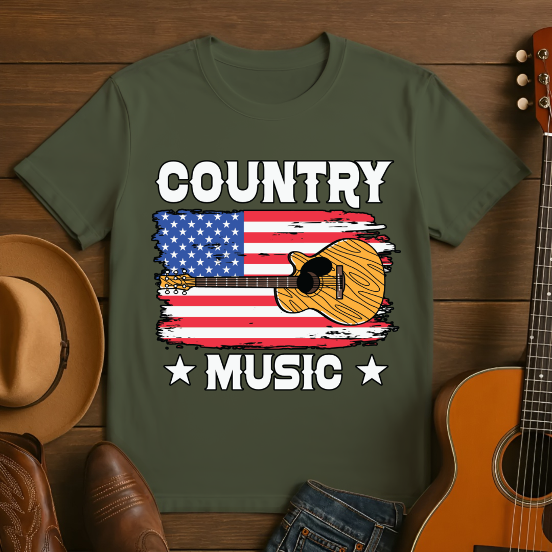 Country Music Guitar American Flag T-Shirt