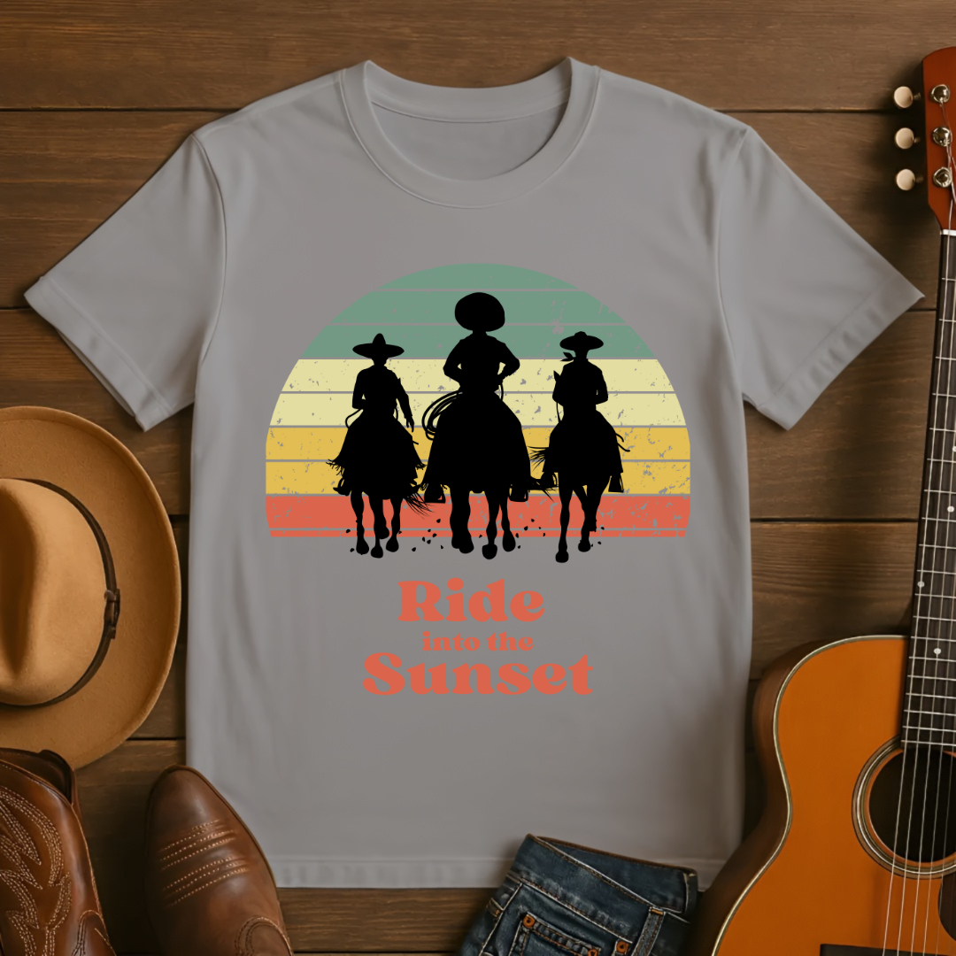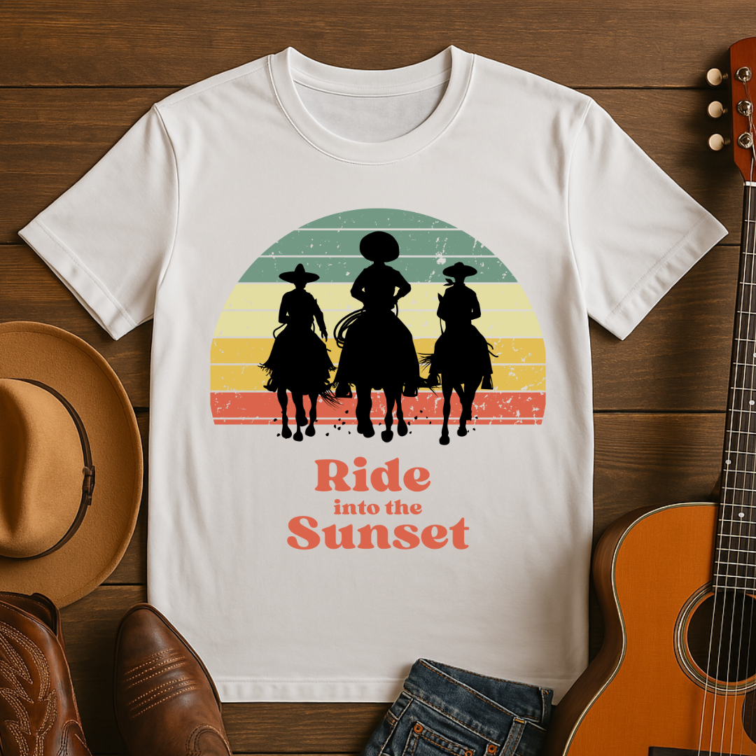 Cowboys Riding into a Retro Sunset T-Shirt